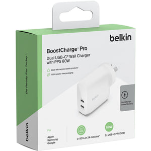 Belkin BoostUp Charge Dual USB-C Wall Charger with PPS 60W (White)