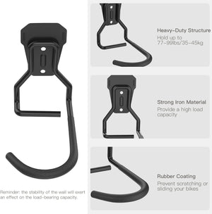 Bike Wall Mount with Fixed Hook, [4 Pack] Heavy Duty Bike Storage Rack, Bike Rack Vertical Stand for Garage - Easily Hang/Detach - with Screws Iron Bike Hanger Brackets