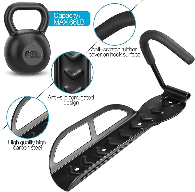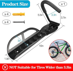 - The metal hook is covered with rubber to protect bike tires from scratches and can only be used on bikes with tires less than 3.3in wide.