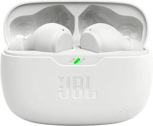 JBL Vibe Beam - True Wireless JBL Deep Bass Sound Earbuds, Bluetooth 5.2, Water & Dust Resistant, Hands-free call with VoiceAware, Up to 32 hours of battery life (White)