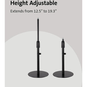 A versatile desktop mounting solution for microphones, webcams and lighting systems (3/8” screw mount with 1/4” and 5/8” adapters included). Extends from 300 - 480mm (11.8” to 19”) to accommodate different webcam, microphone and lighting configurations. Keeps unsightly cords organised and out of your workspace - allowing for a clean and tidy video conferencing setup. A wide, non-skid base keeps your stand and accessories stable during use.