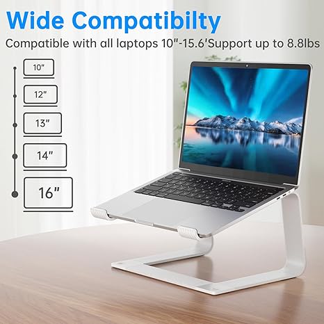 - When assembled, this laptop stand measures 10.87" (L) × 8.5" (W) × 6" (H), offering universal compatibility with 10-16 inch laptops such as the MacBook (12/13-inch), MacBook Air (13-inch), MacBook Pro (13/16-inch), Microsoft Surface series, Dell/HP notebooks, Chromebooks, and ohter portable devices.