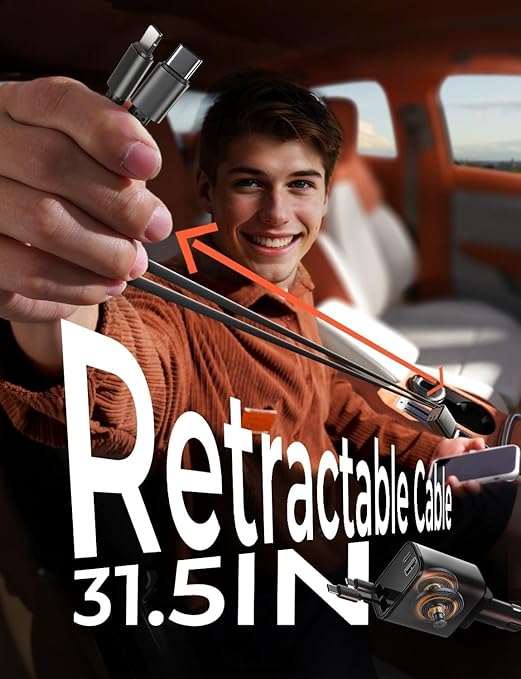 Featuring Dual USB Ports and a Retractable Cable, The Lisen 4 in 1 Charger Offers a Clutter-Free Solution for Charging Multiple Devices. Perfect for Truck Enthusiasts or as a Thoughtful Gift for Drivers, It Supports Android and iPhone Users, Including Fast USB-C Charging for Devices Like the iPhone 16 Pro Max. Keep Your Vehicle Organized While Ensuring Efficient Power Delivery for All Your Tech. This is a Standard 12V Car Charger Only for Charging Devices (USB Power Supply). It Does not Support CarPlay, Bluetooth, or Data Transfer. Compatible With Most Phones, Tablets, and Small Electronics