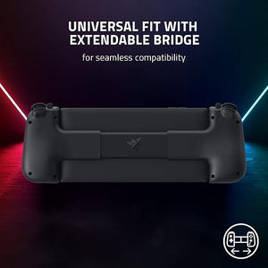 - UNIVERSAL FIT WITH EXTENDABLE BRIDGE — Features a stable, extendable bridge that perfectly holds most popular Android smartphones, providing a secure fit that won’t come loose while gaming