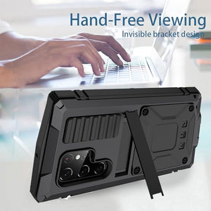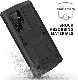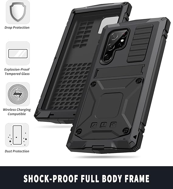 Samsung S22 Ultra Metal Case with Screen Protector Camera Protector Military Rugged Heavy Duty Shockproof Case with Stand Full Cover Tough case for Samsung S22 Ultra (S22 Ultra, Black)
