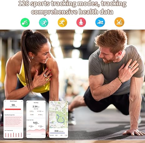 - Smart ring health tracker Monitor steps, calories burned, and workout intensity across 128+ activities (running, swimming, yoga, etc.). The fitness tracker ring provides accurate data to enhance performance.